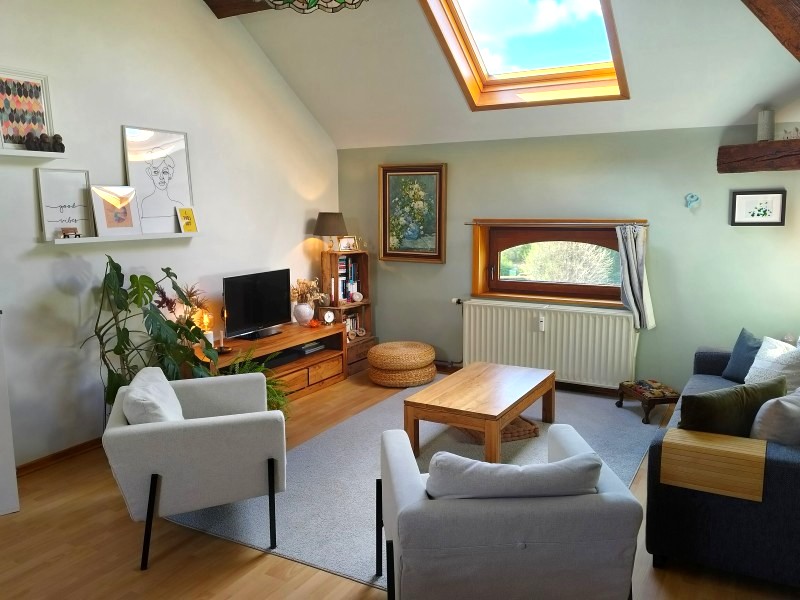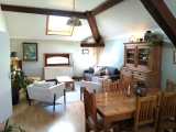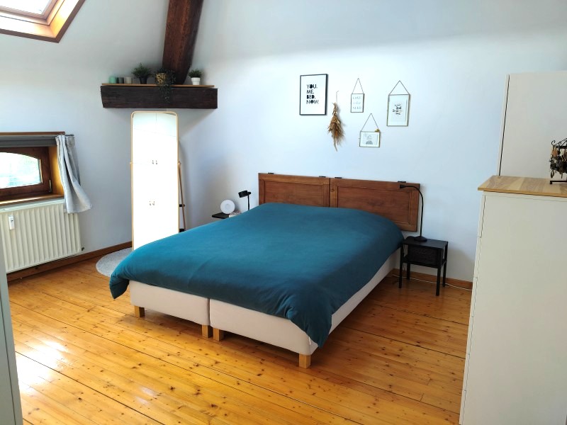 Dans un très joli bâtiment au caractère d'antan complètement rénové, spacieux et lumineux appartement tout confort de 93 m². Agréable et volumineux séjour de 41 m² avec cuisine équipée, 2 très spacieuses chambres, salle de douches, grand garage et emplacement de parking, cave. Environnement très sympa : endroit calme et reposant, retrait important de la voirie, jardin commun. Très belle situation, à 2 pas de l'E411 et de l'échangeur de Daussoulx.