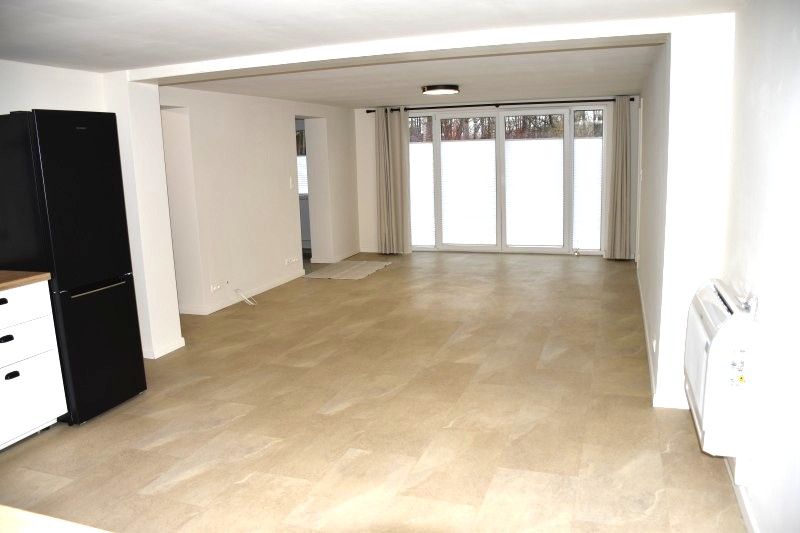 Dans un petit immeuble en retrait important de la voirie idéalement situé à deux pas de tous commerces, des écoles et des moyens de communication, spacieux et très confortable appartement neuf de 108 m². Vaste séjour ouvert avec magnifique cuisine super équipée, 2 grandes chambres, salle de bain meublée et équipée, buanderie, rangement, parking, terrasse, grand jardin commun.Isolation très performante, climatiseurs, châssis double vitrage, complètement équipé en luminaires, tentures et stores. Faibles charges communes.